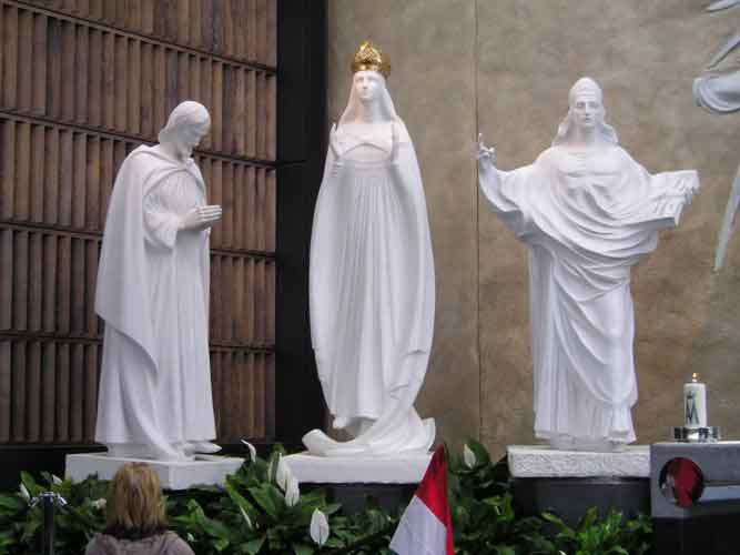 A látnokok leírása szerint Szent József és Szent János állt Mária mellett