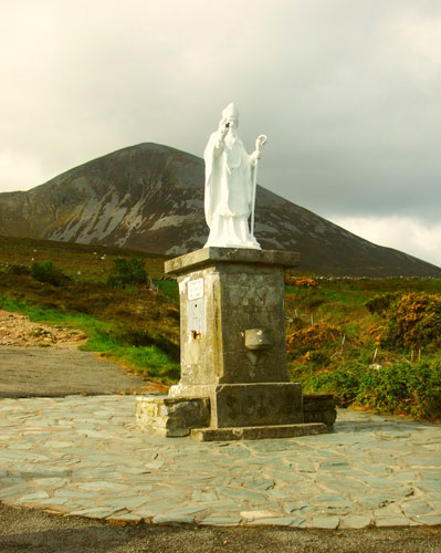 A legenda tanúsága szerint Szent Patrick 440-ben a Húsvét előtti böjt 40 napját ezen a hegyen töltötte el. Fekete madarak képében démonok kísértették, de a kiállt próba után bizonyosságot kapott, hogy az írek katolikus hitüket soha nem fogják elveszíteni. Ugyancsak neki tulajdonítják azt a legendát is, miszerint a kígyók és más szörnyek a prédikációja hatására erről a hegyről vetették alá magukat a mélybe, és azóta sem tértek vissza a szigetre. Minden év július utolsó vasárnapján tíz-húszezer ember zarándokol fel a Murrisk-félszigeten magasodó Patrick-hegy csúcsára, hogy így nyerjenek bűnbocsánatot.