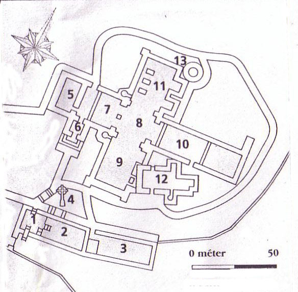 (A távlati képen szerepel, de az alaprajzon nem az O’Scully emlékmű. Ez nem is tartozik a történelmi királyi és egyházi együtteshez. Egy helybeli földbirtokos család állíttatott 1870-ben, az 1976-os viharban az is megrongálódott.)