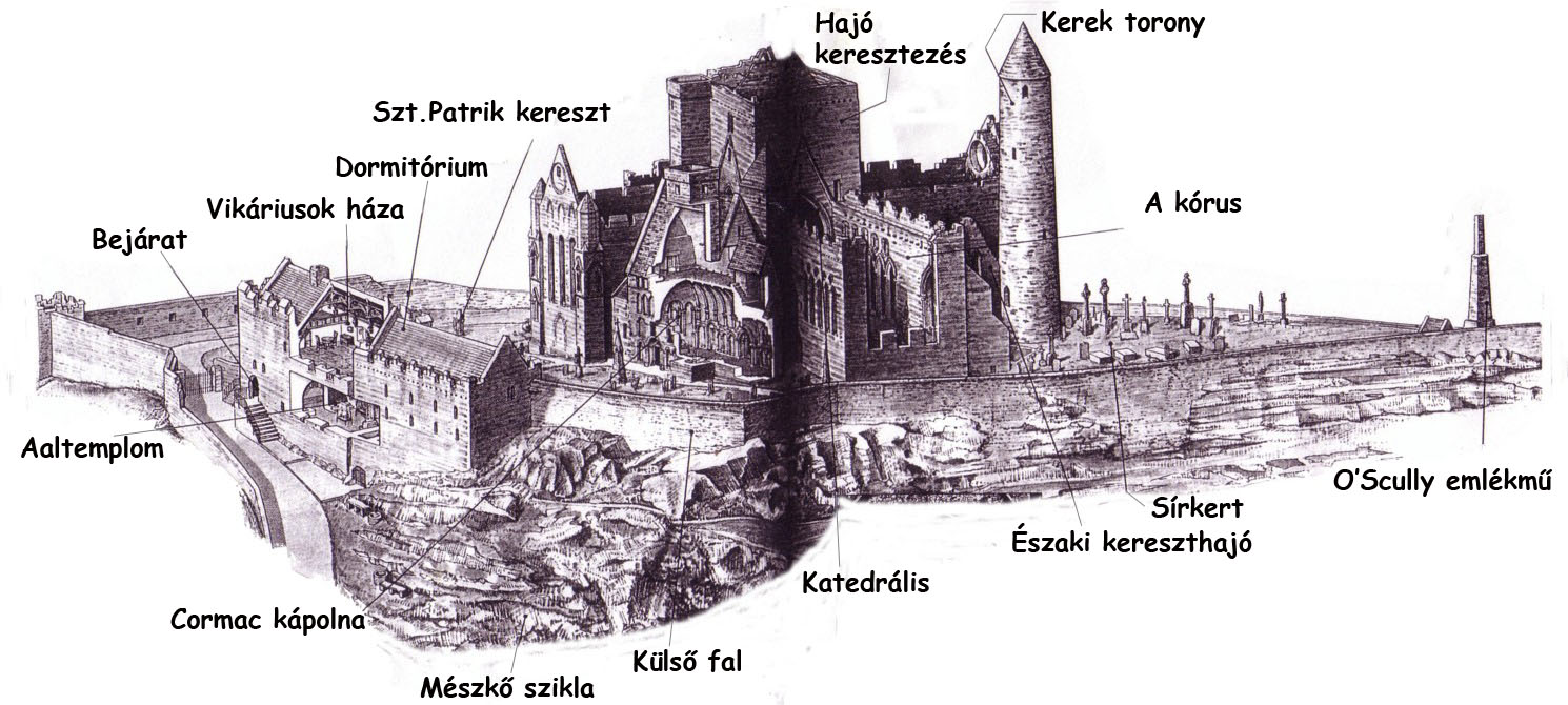 A 60 m magas sziklán található épületegyüttes,  az egyik leglátványosabb erőd, mely a Tipperary grófságban, Munster tartományban, a Suir balpartján, a Tipperary-síkságból emelkedik ki. Ma is püspöki székhely. A hegyen álló központ több, mint ezer évig volt előbb királyi, majd 1101-től egyházi központ és ennek megfelelően a hatalom jelképe is Írországban. Az V. századtól kezdve Munster királyainak székhelye volt. Birtokuk szinte egész Dél-Írországra kiterjedt.