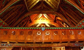 Az emeleten a vikáriusok szépen faragott mennyezetű kórusát tekinthetjük meg. A középkori tervek alapján helyreállított mennyezet súlya angyalokhoz hasonló konzolokon nyugszik, melyeket  a mennyezethez hasonlóan festettek meg.
