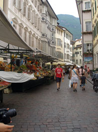 el a híres bolzanoi gyümölcspiac, még az utca neve is Obstmark