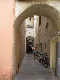 Majd rövid sétát tettünk a belváros ódon házai között, szinte átbújtunk egy-egy sikátorán.