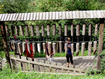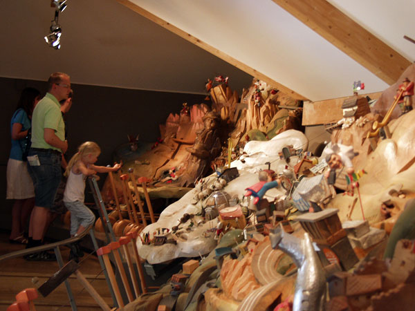 A tiroli játék-szoba: a karok mozgatásával kell a golyókat fel- illetve lejuttatni.