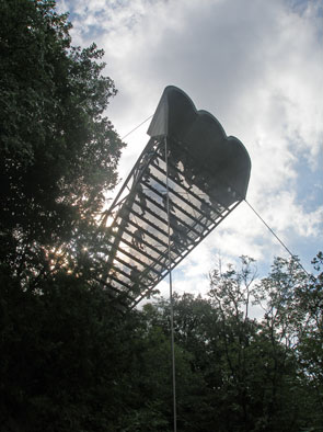 lentről pedig a tó, közepén színpaddal, s körben lelátókkal.