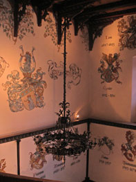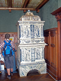 Sissi lakosztálya felé vezető lépcső és a szobák egyikében lévő cserépkályha