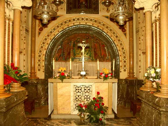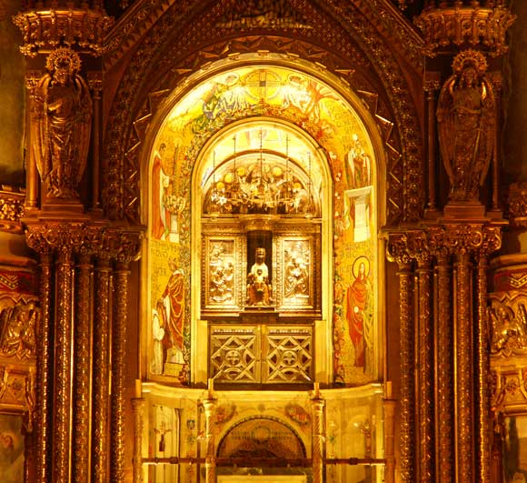 A fekete Madonna szobra a főoltár felett