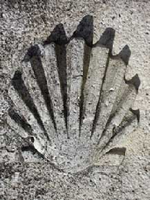 A zarándokút útjelzői a sárga nyilak és kagylók. A zarándoknak nem kell térképet magával vinnie, mert ezek a jelek pontosan útbaigazítják. (Ez különösen a Francia útra igaz, az van a legjobban kiépítve) A Szent Jakab-ábrázolásokon és már a középkor zarándokain is megjelenő kagyló utalhatott arra is, hogy az óceánon keresztül érkezett ide Jézus tanítványa, Spanyolország térítője és védőszentje. Azonban más magyarázat is van: egy legenda szerint az egyik első zarándokot rablók támadták meg a tengerparton, mire ő a vízbe menekült, és Szent Jakab közbenjárására az egész testét beborító kagylók mentették ki. A kagyló egyben a keresztény ember szimbóluma is lehet. A kagyló ugyanis kinyílik az életéhez szükséges táplálék miatt, s a bekerülő homokszemeket igazgyönggyé alakítja. Ugyanígy a keresztény ember sem zárkózhat be önmagába azért, hogy elkerülje életében a rosszat, a fájdalmat. Talán éppen emiatt van XVI. Benedek pápának a címerében kiemelt helyen a kagyló. A Gondviselő Isten megadja az erőt, hogy a mások felé való megnyílás során kapott sebek, fájdalmak igazgyönggyé alakuljanak. Az élet maga is olyan, mint egy zarándoklat, folyamatos úton levés, Isten pedig irányjelzőket helyez el az élet ösvénye szélén, amik segítséget adnak a helyes irány követéséhez, csak észre kell venni őket.