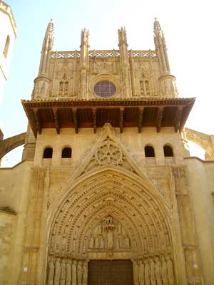 Rövid sétával felkerestük a város legrégebbi templomát is, a San Pedro el Viejót, amely 1117-ből való háromhajós, félkör alakú apszisokkal, és az aragon királyok pantheonjával. A templom alapvetően román stílusú, de bőségesen található benne mozarab motívum is. Ehhez a templomhoz gyönyörű kerengővel kapcsolódik a kolostor. Ebben a városban ért az első meglepetés is: a gyönyörű románkori, gótikus, reneszánsz épületek mellett milyen otromba modern épületeket engedélyeznek helyenként. Hasonló "barbársággal" a későbbiek során is találkoztunk, s engem különösen Zaragoza főtere keserített el, mivel korábban láttam még elcsúfítás nélkül is.