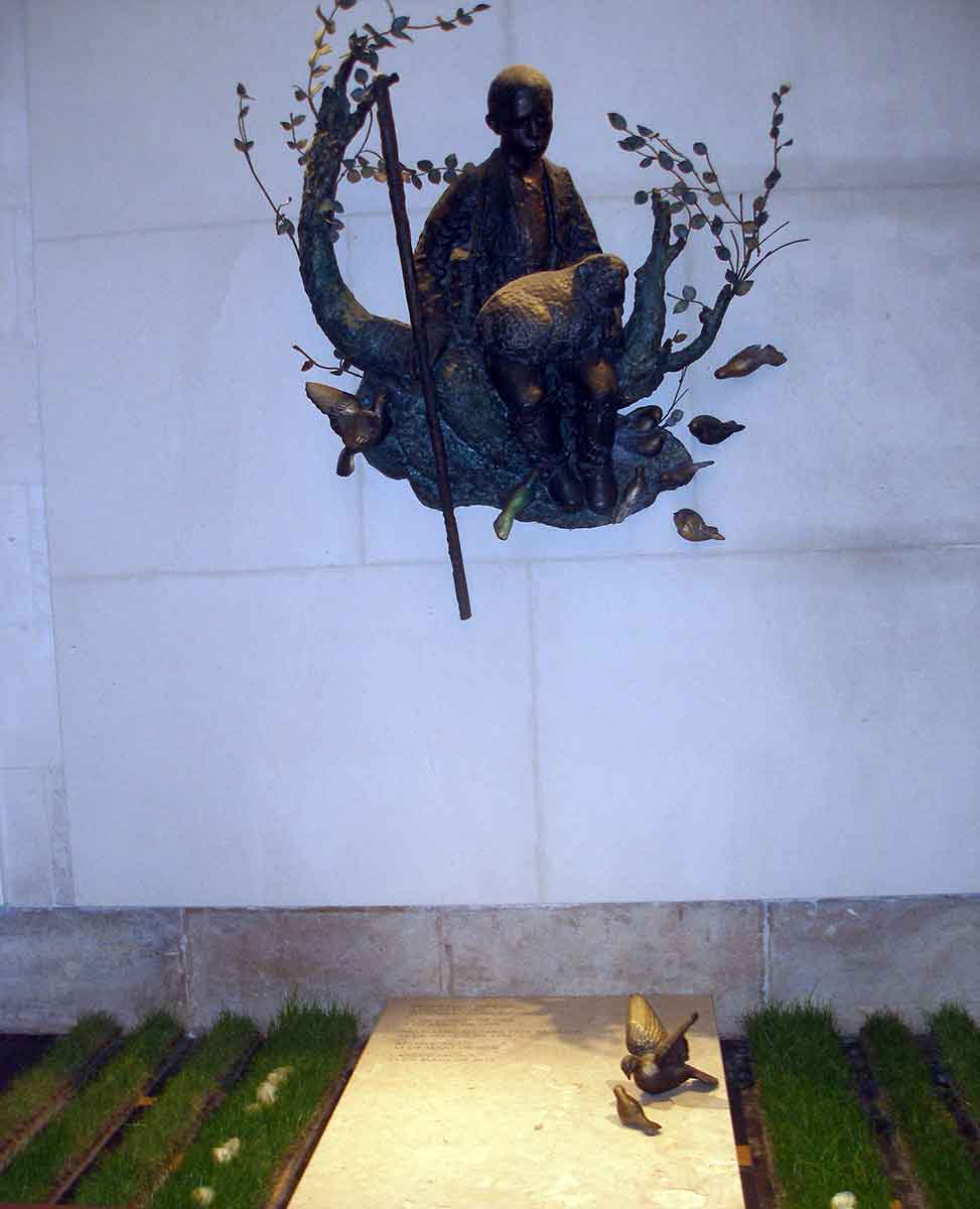 A Bazilika főhajójának 4 sarkában, a világ 4 nagy Szűz Mária tisztelői között Szt. István szobra, melyet Szappanos Béla készített