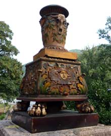 Igaz, hogy már itt is a pusztulás nyomai fedezhetők fel, az épületet körbevevő terasz kőoszlopainak Zsolnay virágvázáiból is már csak egy maradt meg.