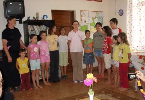 Utunk záró programjaként meglátogattuk Böjte Csaba testvér Szent Antal gyermekotthonát. A város a volt helyőrségi laktanyákat adta át, a hat meglehetősen romos épületből már négy teljesen felújítva 80 gyermek részére ad meleg otthont. Egy épületben két otthon van, egyenként 10-10 gyermek számára. A négy házból három a lányoké, és egy a fiúké. A gyerekeknek három szoba áll rendelkezésre és egy nagy nappali konyhával és a nevelői lakrésszel. Ezek valóban otthonok: a gyerekek kijárnak a város óvodájába, iskolájába, ez alatt a nevelőjük bevásárol, mos, elkészíti az ennivalót, stb. Minden lakrészben a nappaliban van a nagy ebédlőasztal, ahol 11 főre terítenek: a 10 gyereknek és a nevelőnek, mint egy családban.